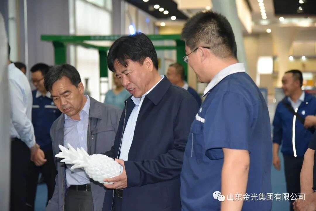 新疆生产建设兵团第十三师副师长潘朝印一行参观金光集团展厅,对集团的五大系列产品进行了详细的了解,参观人员对集团的产品给与充分的肯定,并对集团新材料产生了浓厚的兴趣。德州市人大常委会副主任、九三学社主委钟玲女士表示:金光集团在发展传统行业产品之上,不断进取发展,在新产品新技术上大量投入研发工作,势必会成为金光集团未来的一张新名片。
