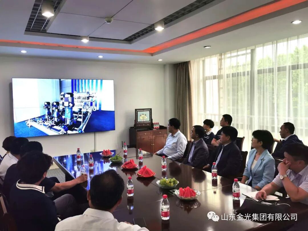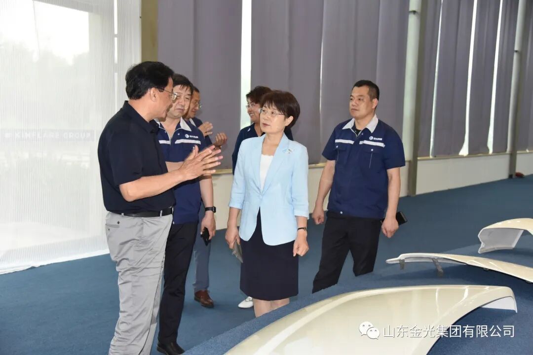 6月1日,新疆生产建设兵团第十三师副师长潘朝印一行莅临金光集团调研指导工作,德州市人大常委会副主任、九三学社主委钟玲女士;区人大常委会副主任李丰新;德商商会会长、鑫衢集团董事长王玲玲女士等人参加活动。集团董事长苏芳志、总经理张传温、副总经理赵智莺热情接待来宾,副总经理郭俊锋就集团的发展及产品作详细介绍。